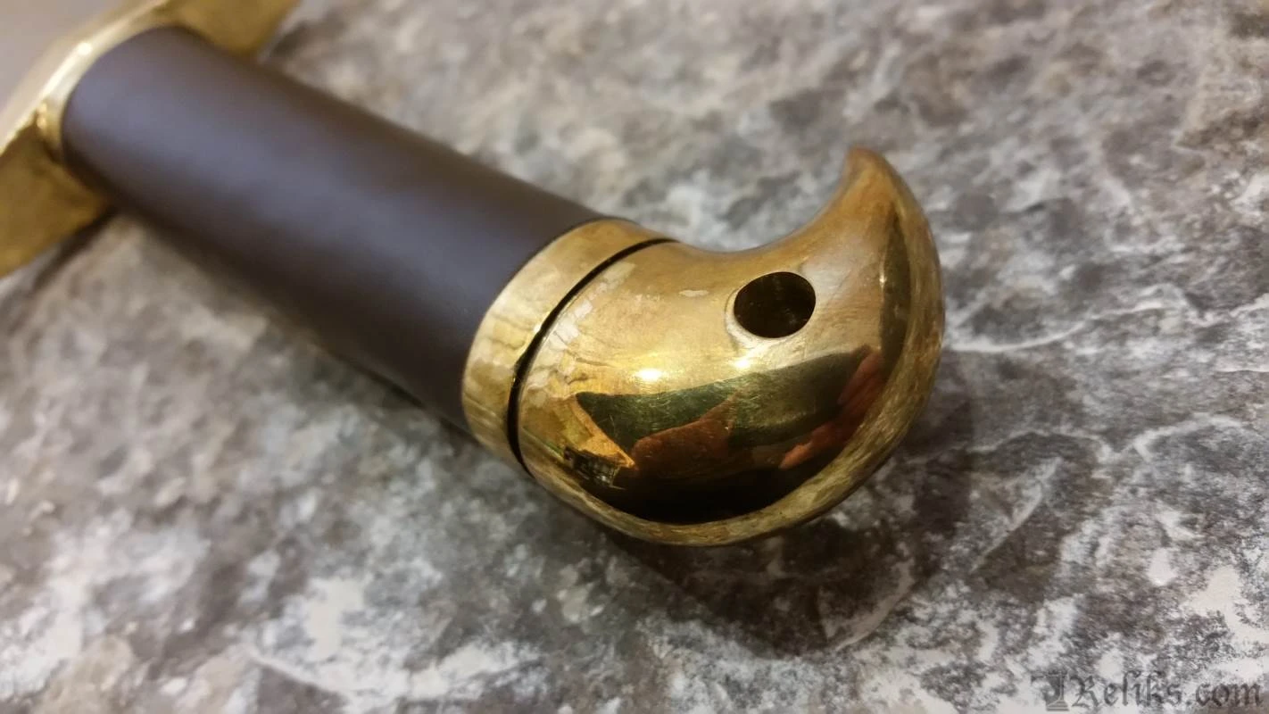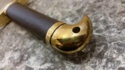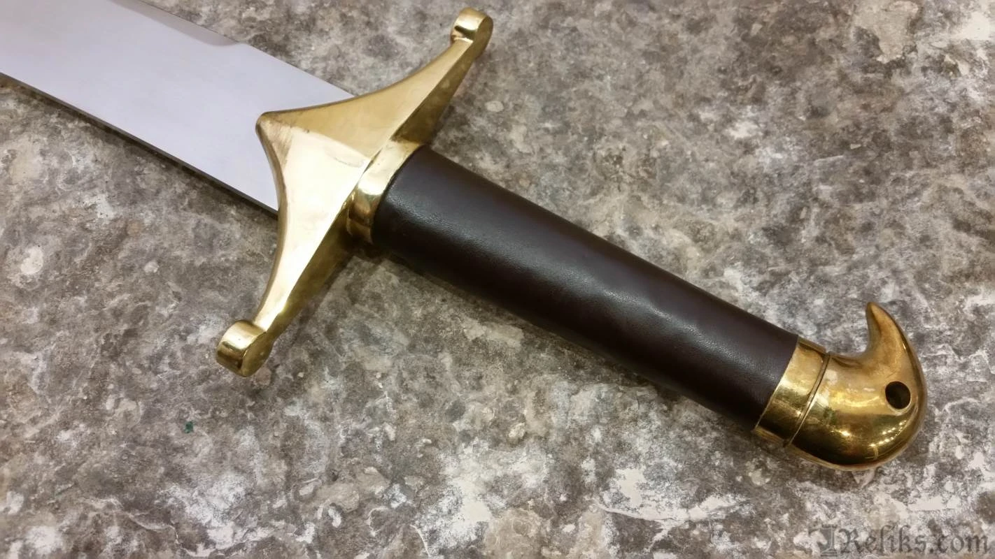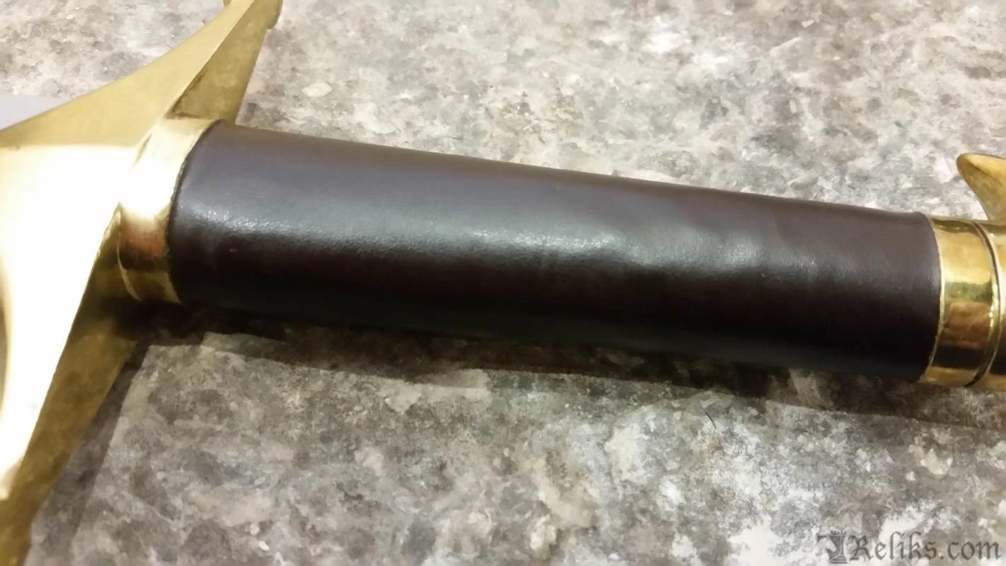 The blades on these swords are forged by accomplished sword smiths from high carbon steel and properly tempered to withstand the demands of cutting sword targets. At 31” this 1 3/4” blade widens towards the tip to approximately 2 5/8” at its widest point. The grip is made of a traditional hardwood then is finished with a leather wrap, improving its grip. The hawksbill pommel is recreated with expert craftsmanship perfectly matching the original swords its time.