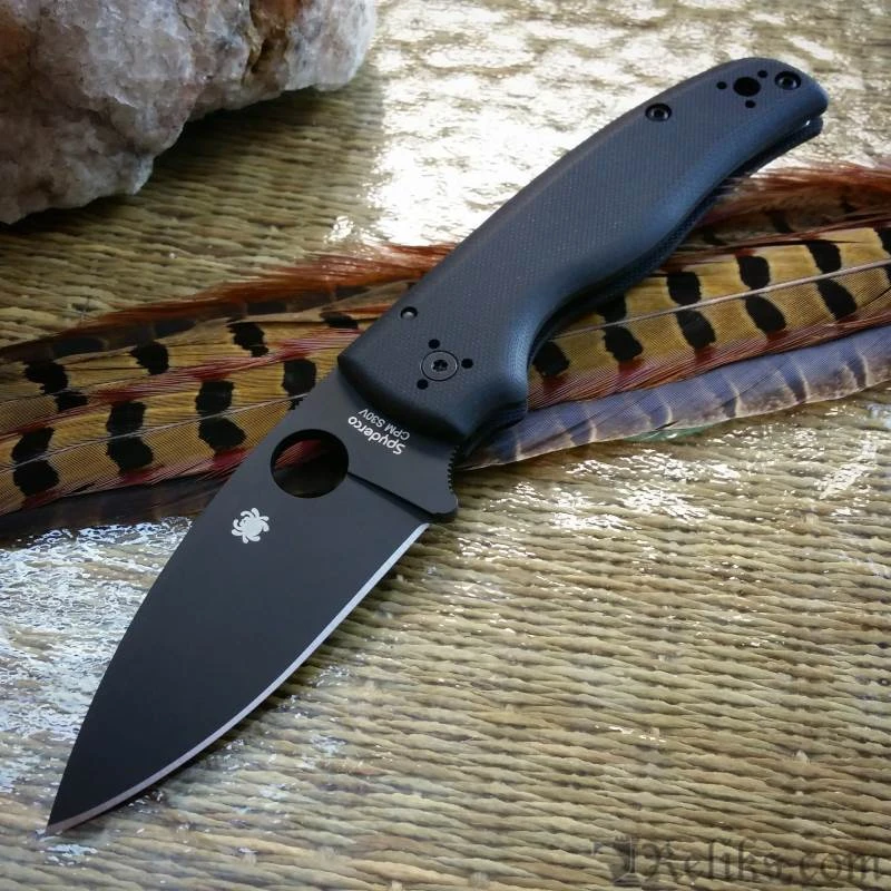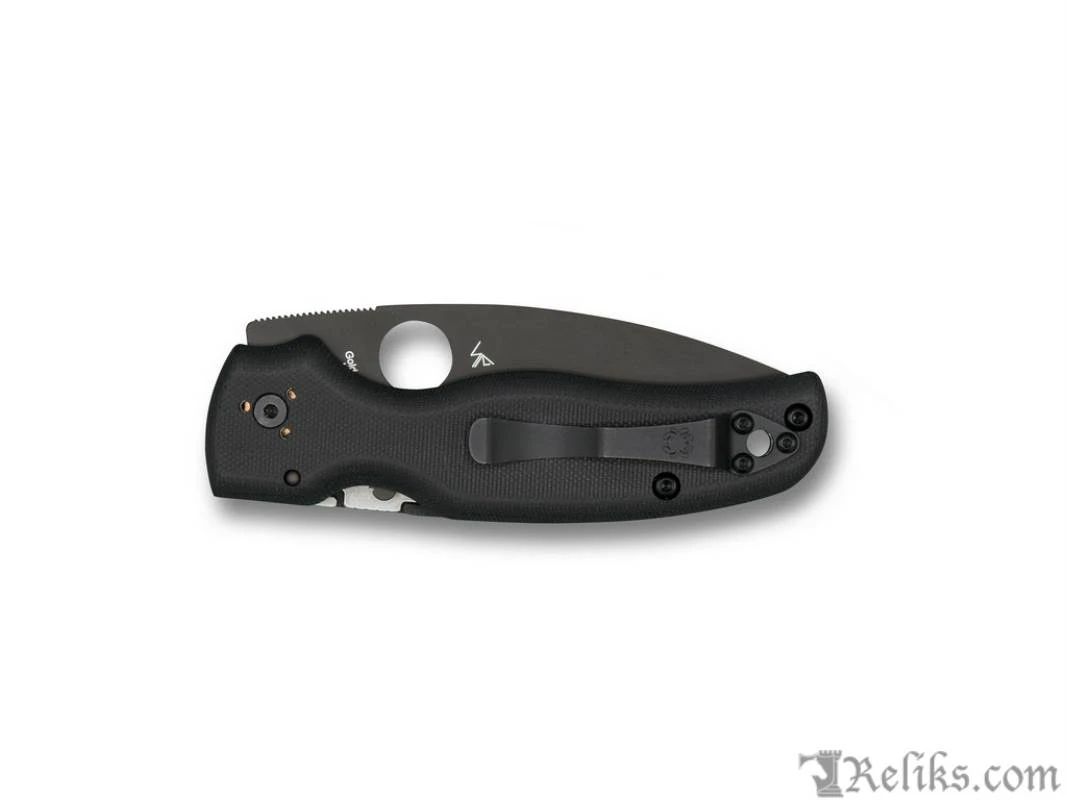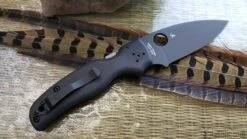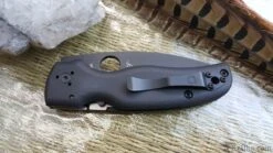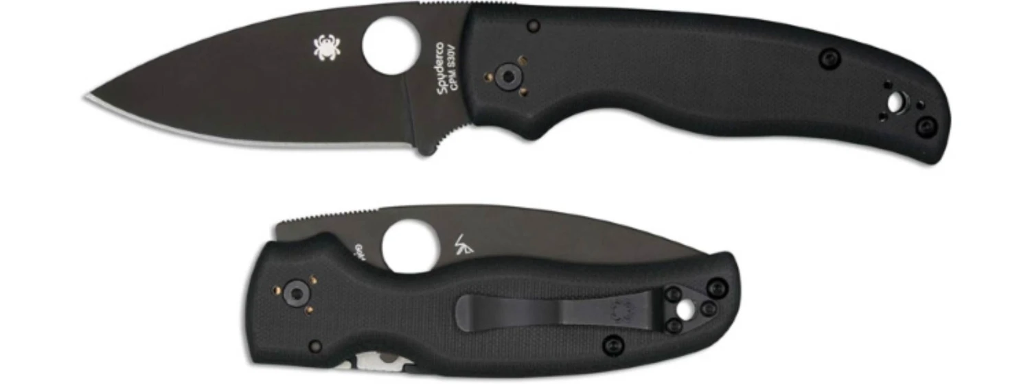 The Shaman is a hand-filling, no-nonsense folding knife based on the proven design theme of the iconic Spyderco Native. About 20 percent larger than the Native, it offers the same refined ergonomics, as well as a few significant differences. The Shaman’s blade is crafted from CPM S30V stainless steel and features a very high flat grind that balances strength, low-friction edge geometry, and an acute, utilitarian point. Its signature Trademark Round Hole™ is fully accessible from both sides to support swift, one-handed opening with either hand. For tactical applications where light discipline is a concern, this version of the Shaman also boasts a non-reflective black Diamond Like Carbon (DLC) blade coating. Although the Shaman’s handle shape and ergonomics follow the spirit of the Native, its construction and lock mechanism are distinctly different. The scales are 3-D machined from G-10 and thoughtfully contoured to provide a comfortable, secure grip. Skeletonized stainless steel liners nested within the smooth, matte-finished scales reinforce the handle’s structural strength and form the basis of the knife’s patented Compression Lock™. To ensure convenient carry and keep the knife poised for immediate access, the handle includes a four-position pocket clip that supports left or right-side, tip-up or tip-down carry. Like the blade, the clip and all handle hardware feature a non-reflective matte black coating.