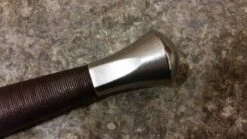 The Kingston Arms Sport Feder is an answer to the clubs, beginners and even seasoned practitioners that want a light, fast, safe and affordable sparring sword for HEMA longsword sparring. This federschwert was designed to be safe in the thrust by flexing in the last third of the blade while keeping the rest of the sword stiff in the bind. The tip is slightly flared in thickness as well and can be used as it is with proper equipment or fitted with a leather mask or plastic tip for an added degree of safety. Other features include a ramped thumb guard, allowing easy placement of a gloved thumb onto and off the blade during guard transitions. The pommel is indexed to the flat of the blade, making it second nature to distinguish proper edge alignment with the rearward hand. The wood core grip is in a well rounded rectangular cross section and tightly bound with an overwrap of cord to provide a firm grip.