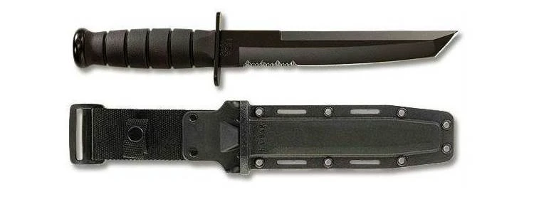 The Ka-Bar Tanto blade shape, of Asian influence, has a thick pointed blade that”s good for penetration. Coupled with a Kydex sheath, this knife is designed for the toughest of tasks.