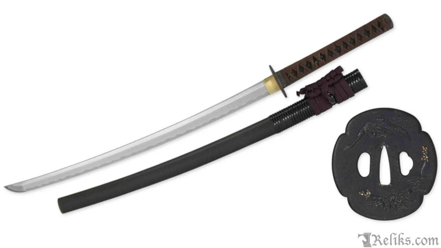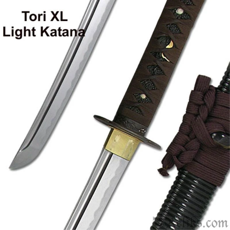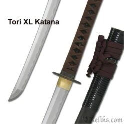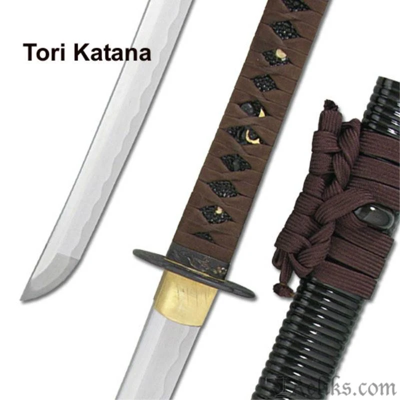 The Tori folded katana is one of the most elegant mounts ever crafted by CAS/Hanwei that incorporates truly elegant furniture with the functionality of our performance series. Featuring a flying crane tsuba, brown leather tsuka-ito over black same and a dark brown/black saya, the Tori is available in three folded steel cutting blade profiles. Features include a folded steel blade and premium fittings.