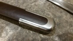 The Tourney Series Medieval Sparring Sword from Kingston Arms will set a new standard in this price point of re-enactment weaponry. Features like thru-tang handle construction, peened thru-tang stainless steel pommel and guard, and 2mm rounded edge thickness make this a brutal weapon on the battle field. The cord wrapped leather grip feels exceptional in the hand with an oval cross section and slight barrel shape to keep fatigue at bay. The grip is large enough to accomodate armoured hands. A respectable fuller runs the length of the blade to lighten and counter balance the swords overall. A wood core and leather wrapped scabbard tipped with a stainless chape comes with each sword. The blade is forged from 9260 high carbon spring steel and is tempered to about 50 Hrc, providing a long lasting sword. The guard needs special mention, featuring the King-Peen system. King-Peen is essentially a steel tab on the guard under the grip that is pinned through the tang of the sword. This process keeps the guard from going loose after a lengthy campaign without compromising the strength of the hilt. The pommel is pressed into place and hot peened. Combine these two processes and you get a sword that rings like a bell when struck.