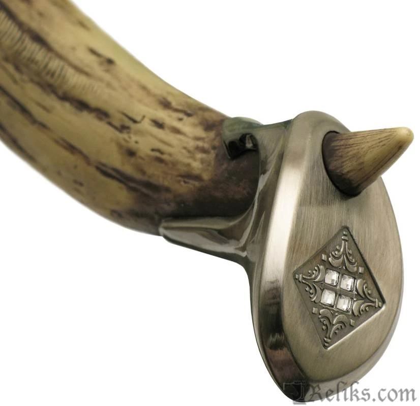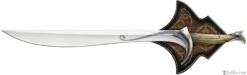 In Third Age of Middle-earth, Thorin Oakenshield and his Company of Dwarves came upon a troll lair in Rhûdaur. Thorin found an ancient Elven sword named Orcrist, forged by the high Elves of the West. Adorning the pommel is an emblem of the heraldry of Ecthelion of the Fountain. The hilt is shaped from the tooth of a dragon. This authentically detailed replica is a reproduction of the filming prop built by Weta Workshop of New Zealand and used in the movie, THE HOBBIT: AN UNEXPECTED JOURNEY. United Cutlery, industry leader in fine movie reproductions, has meticulously recreated the prop using only the finest grade materials and craftsmanship. Close attention to detail was a top priority. The sword is 38 3/4” long and features a 25 7/8″ stainless steel blade with an etched runic inscription. The hilt is crafted with solid metal parts, simulated gemstones and an acrylic resin grip. It is presented with a wood wall display and includes a certificate of authenticity.