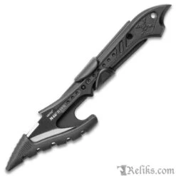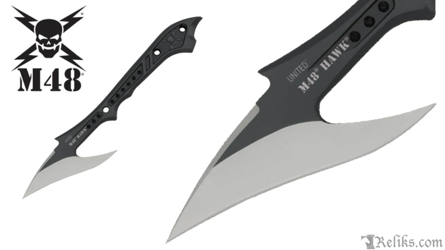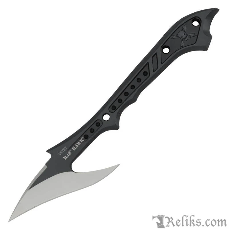 This M48 Hawk Harpoon knife features a razor-sharp blade that will slice through anything like butter, and a tip that will penetrate practically any target effortlessly. The wicked curve of this powerful blade allows it to be used for a variety of purposes. Lashing holes allow you to attach this harpoon knife to a wooden rod or stick, making an excellent harpoon or spear that can be used for hunting, fishing, and much more. Crafted of one solid piece of rock-hard 2Cr13 stainless steel with a black oxide coating, this harpoon knife wont bend or break, and will stand up to tough, repeated use. The rubberized sheath will house this harpoon knife securely and protect you from its razor-sharp blade when not in use. Measures 8 ¼” overall.