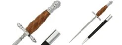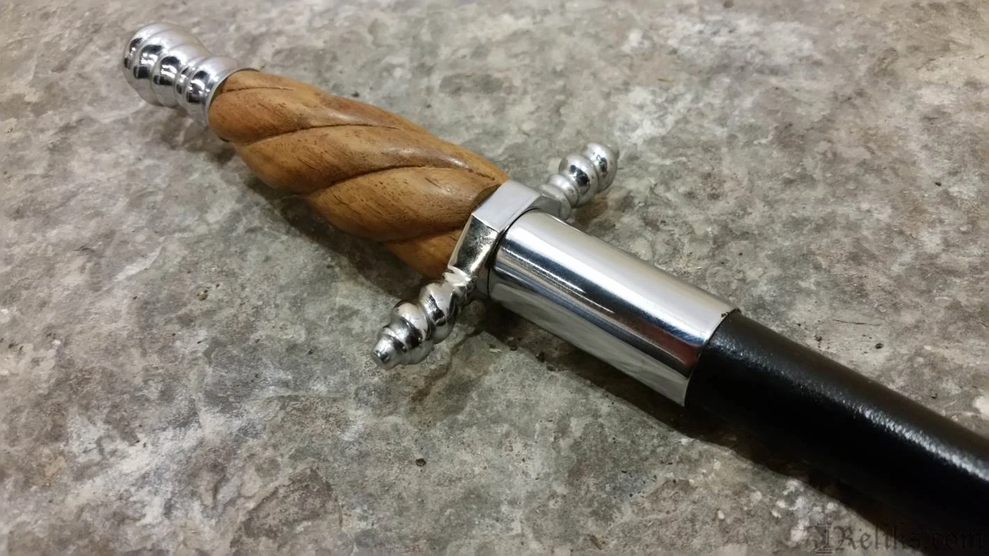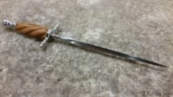 On a recent trip to Venice, we were touring the Doge’s Palace and admiring the weapons when a particularly beautiful stiletto caught our eye. Centuries old, its elegantly crafted contours and unique triangular blade were obviously shaped by a master – someone who knew his work and knew form and function as well; for the dagger shone with a positively happy wickedness. Stilettos came in many sizes, from delicate little hideout weapons to forthright long daggers suitable for use even as a main gauche, but this is certainly one of the more attractive ones we’ve come across. Each blade face is beautifully hollowed. Grip is wood. This functional dagger is made by Windlass Steelcrafts. Comes complete with sheath.