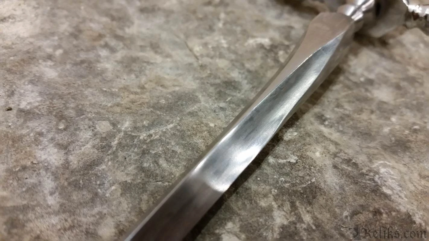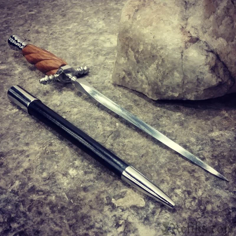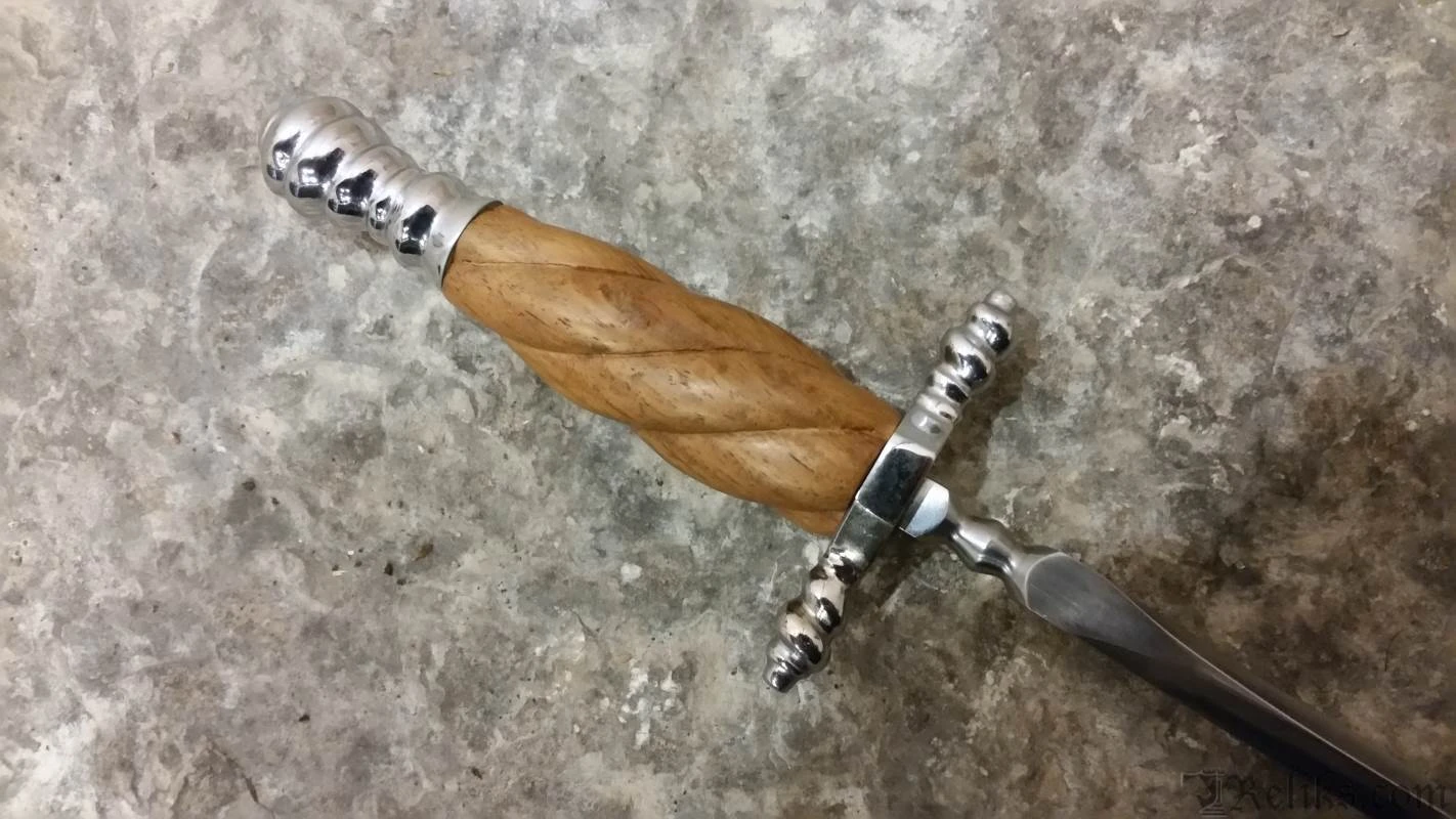 The stiletto was designed primarily as a thrusting weapon, with it’s blade rarely being sharpened. The blade was forged into a rod with fairly narrow, usually triangular cross section although other shapes such as round, square or diamond were not unusual. This type of dagger was widespread in the period when upper class civilian dress often incorporated mail or leather body armour.
