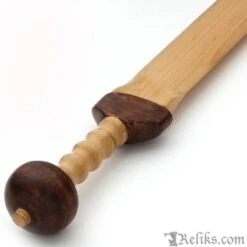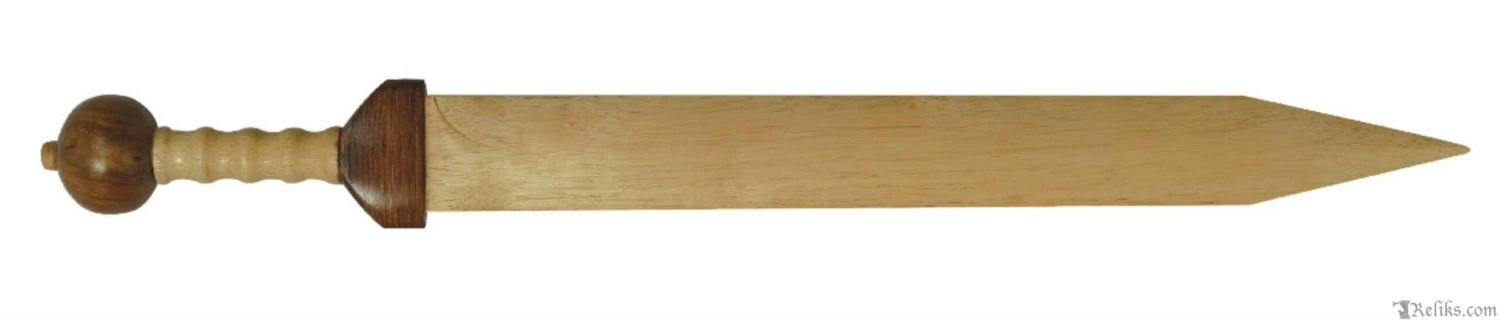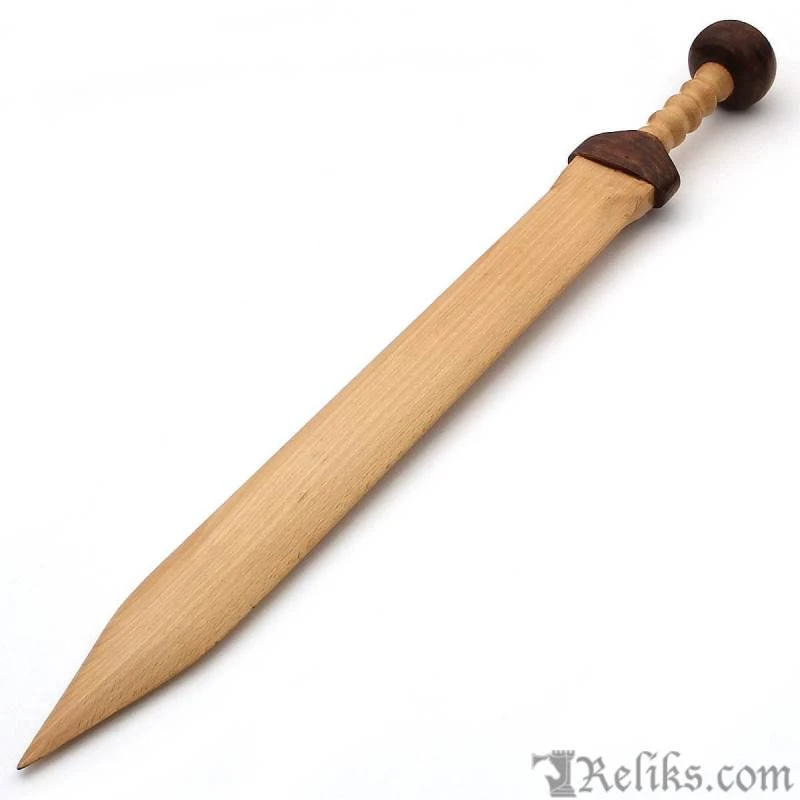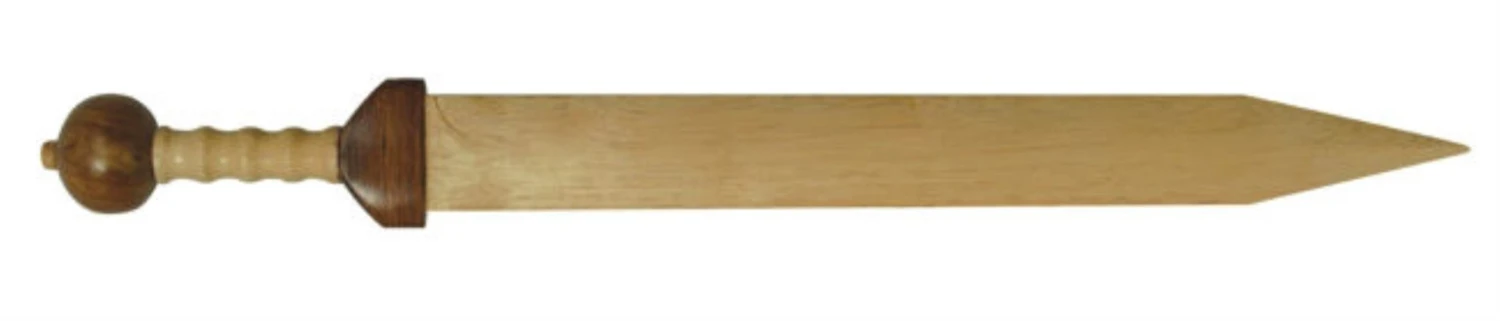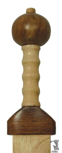 Not only were wooden swords used by Gladiators for training, but if he survived the arena and lived long enough to retire, a symbolic wooden gladius, or rudis, was awarded as a token of discharge and freedom. Our practice sword is made of solid steamed beechwood with a darker contrasting stain on the pommel and hilt. Fully seasoned, it can take the abuse of sparring, even edge-to-edge, although wood can break along the grain.